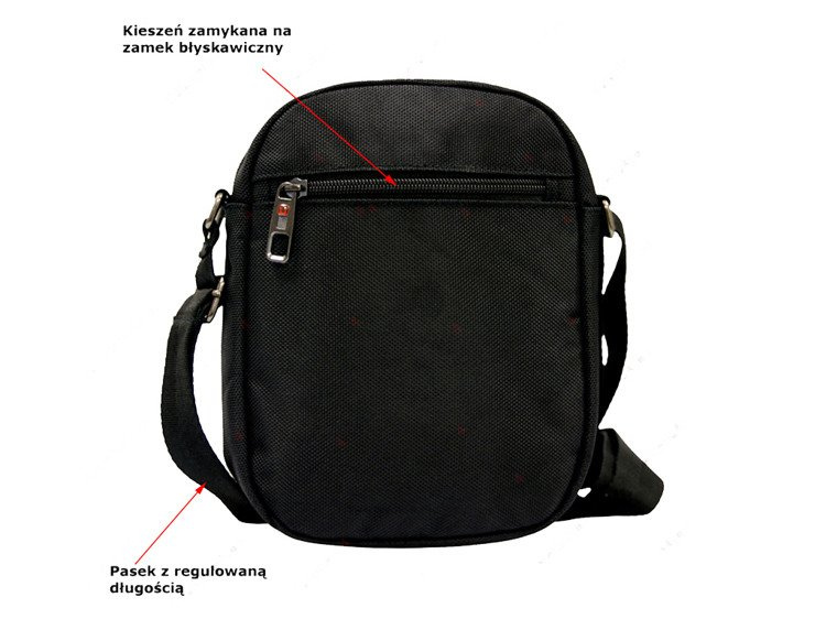 - Z przodu i tyłu torby kieszeń zamykana na zamek błyskawiczny,