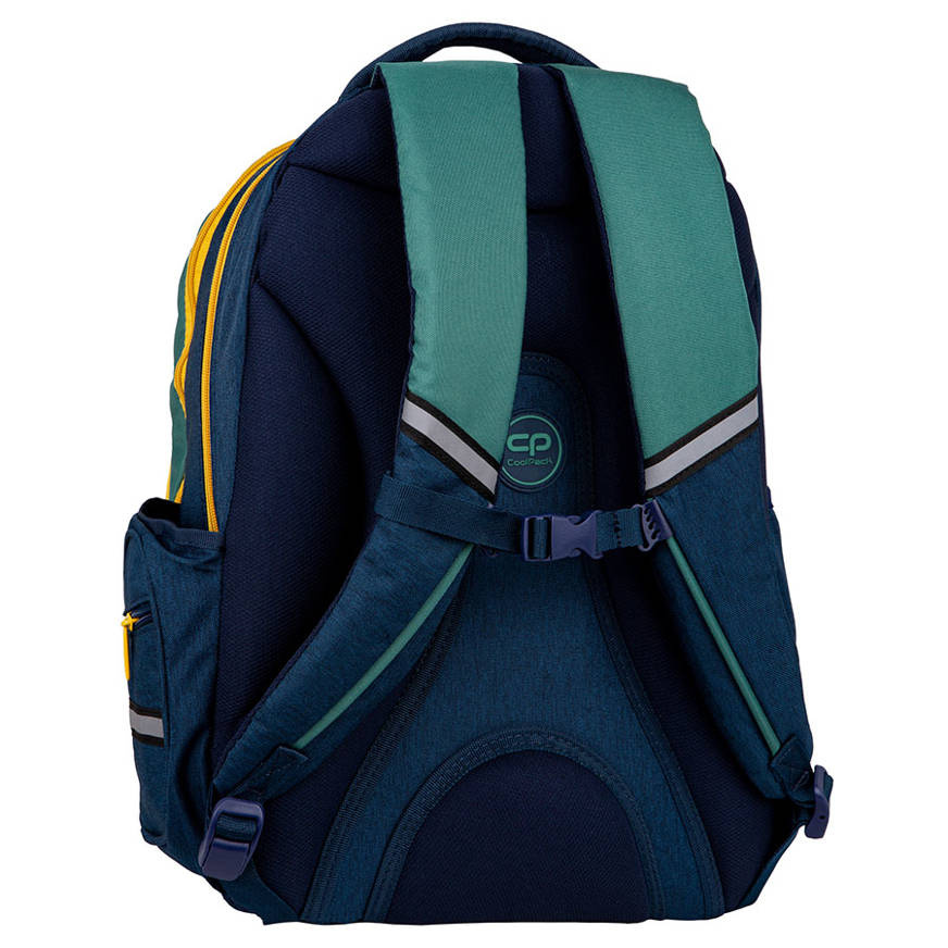 3 pojemne komory pomieszczą wszystkie niezbędne książki i akcesoria. Boczne kieszonki idealnie przydadzą się do przechowywania bidonu czy butelki z napojem. Wyściełane i regulowane szelki pozwolą dopasować plecak do wzrostu dziecka. Profilowane plecy z pianki zadbają o kręgosłup i komfort noszenia. Elementy odblaskowe sprawią, że Twoje dziecko będzie lepiej widoczne po zmroku. Kieszeń na laptop, a także organizer z dedykowanymi kieszonkami i zawieszką do kluczy zaprowadza porządek i ład w plecaku.