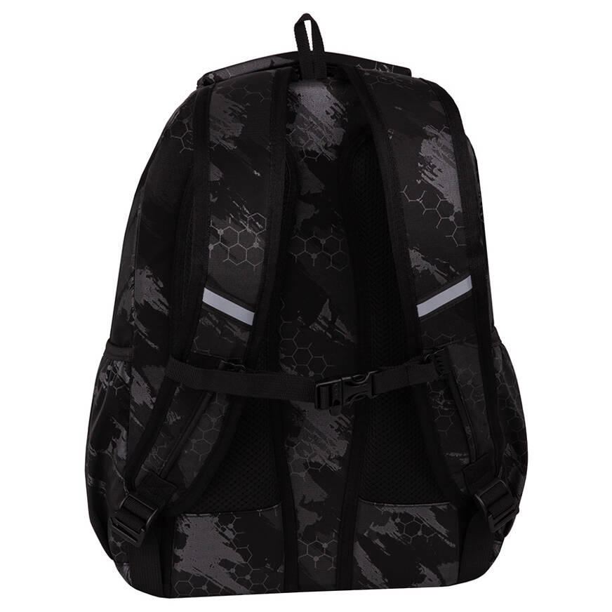 - Wzmocniony spód, który chroni plecak przed zniszczeniem i zabezpiecza rzeczy;