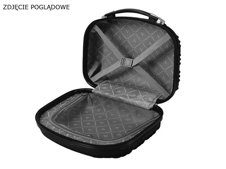 - Kosmetyczka - kuferek usztywniany marki Vip Collection. Wyprodukowany z materiałów odznaczających się dużą wytrzymałością. Posiada uchwyt do przenoszenia kuferka w dłoni i szelki do podtrzymywania bagażu.